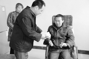 1月11日下午,郸城县法院院长张永波轻车简从,来到农民工张某家中,亲自将某建筑公司拖欠张某两年之久的工资款交到张某手中。