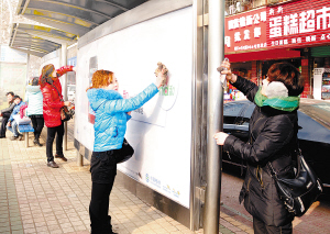 图③:1月24日,公交总公司组织人员清理公交候车亭。为改善市民的乘车条件,公交总公司组织机关后勤人员对中心城区各公交线路沿途的公交候车亭和站牌进行打扫清洗。