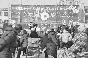 据了解,由县委宣传部策划、协调,由县文广新局、县文明办、县文联、县纪委宣教室承办的“春满中原·欢乐太康”2014年春节群众文艺系列活动于1月23日正式拉开帷幕,一直到1月28日,群众可以在县城人民广场欣赏到戏曲、武术表演、大鼓书、小品、杂技、歌舞等文艺节目;群众在县城南关广场可以欣赏到县乡文联新春汇演、县艺术团新春专场和曲艺、舞蹈、杂技及音乐专场演出;到了晚上,县城人民广场还为群众准备了电影专场。从正月初七直到正月十六,群众依然可以在县人民广场继续欣赏到戏曲、小品、杂技、歌舞等文艺节目和电影专场。