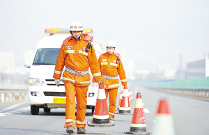 应急救援保春运 1月26日,甘肃天水高速清障救援一大队队员正在救援现场设置安全锥。为保障春运期间高速公路畅通和行车安全,甘肃省高速公路管理局所辖的各高速清障救援大队均放弃了节假日休息,队员们坚守一线,在甘肃省内3000多公里的高速公路上全天候巡查,为“平安春运”保驾护航。