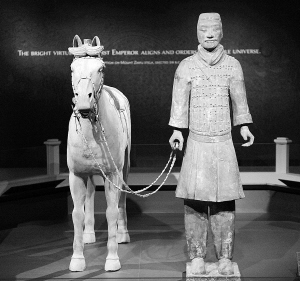 图① 这张2009年11月18日的资料照片显示,中国秦兵马俑在美国首都华盛顿举办的展览上展出。