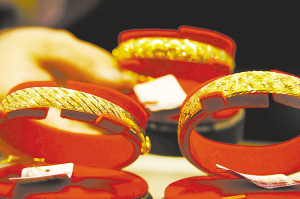 上图 2月10日,一购物中心的黄金柜台前,工作人员在销售黄金饰品。据悉,2013年我国黄金消费量首次突破1000吨,达到1176.4吨,同比增长41.36%。(新华社发)