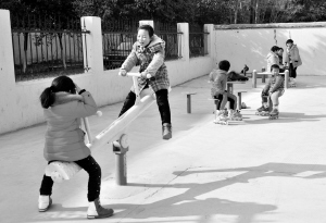 昨日,项城市高寺镇张营行政村新建的健身广场上几名孩子沉浸在新年的愉悦中。近段时间以来,该村村容村貌发生了很大变化,健身广场的交付使用使得村民有了锻炼身体的好去处。(记者 沈湛 摄)