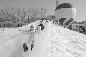 2月11日,在黑龙江省牡丹江市世界地质公园镜泊湖景区,来自各地的青少年参加冰雪娱乐活动。