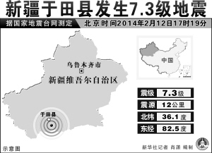 12日17时19分,新疆维吾尔自治区于田县发生7.3级地震且余震不断,南疆地区的和田、于田、墨玉等县市震感强烈。地震发生后,新疆各级党政部门迅速行动,积极开展救灾工作。