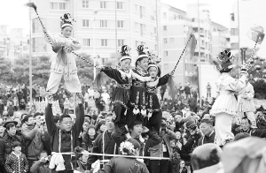 2014年海峡两岸民俗文化节在福州举行 2月12日,2014年海峡两岸民俗文化节上演“肩头戏”。当日,2014年海峡两岸民俗文化节在福州闽江公园举行。本届文化节围绕“继承传统、同根同源、共享欢乐、构建和谐”的理念,充分尊重传统节庆活动的民间性、民俗性和群众性,分为传统民俗项目展示、民俗手工技艺互动体验、两岸民俗队伍大巡游等7大板块,涉及国家级、省级非物质文化遗产项目40多项。 新华社记者 林善传 摄