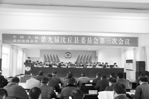 县政协主席刘俊奇代表政协第九届沈丘县委员会常务委员会向大会作工作报告。县政协副主席崔永华代表政协第九届沈丘县委员会常务委员会向大会作提案工作情况报告。