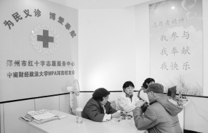 图①:“国平义务诊所”工作人员在解答病人咨询。