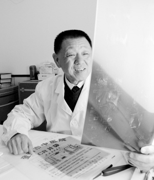 图②:周国平在为病人看片诊断。