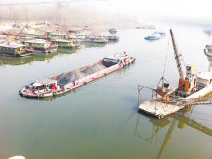 初春,沈丘县码头上一派繁忙的景象。随着沙颍河周口中心城区以下全年通航,绿色、环保、运费节省的内河航运越来越得到人们的认可,沙颍河这条黄金水道越来越体现出它应有的价值。 (孙安平 摄)