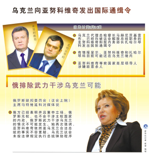 乌克兰代理总检察长马赫尼茨基26日召开记者会,宣布已向被议会解除总统职务的亚努科维奇和前内务部长扎哈尔琴科发出国际通缉令。一同出席记者会的乌第一副总检察长戈隆沙说,有情报显示亚努科维奇和扎哈尔琴科可能还在乌克兰境内。