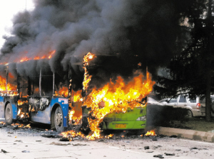 这是2月27日拍摄的贵阳市金阳南路公交车起火事故现场(手机照片)。当日13时许,贵阳市一辆公交车发生燃烧事故。记者在现场了解到,经初步核实,事故已造成5人死亡、30人受伤。目前,受伤人员已送到医院救治,事故原因还在调查中。