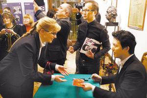 3月1日,在波兰华沙国家交响音乐厅,李云迪在演出结束后为一位波兰乐迷现场签名。