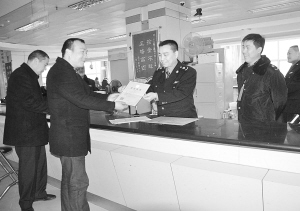 3月3日,一餐饮服务公司负责人从市行政服务大厅工商局服务窗口领取了我市注册资本登记制度改革后的第一张营业执照。新版营业执照把以前多种市场主体营业执照统一为一种版式,年检验照改为年度报告。(记者 王映 摄)