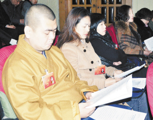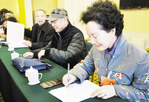 参加市政协三届三次会议的委员在认真填写提案。(记者 王映 摄)