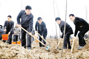 图为市委书记徐光等市领导在川汇区义务植树。 (记者 王映摄)