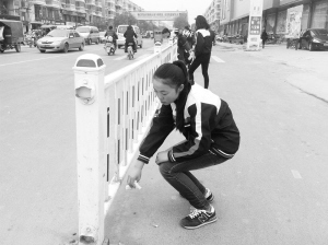 近日,沈丘县回民中学老师、学生走上街头,和交警们一起清洁县城主要街道的护栏。 (孙安平 摄)