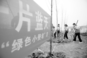 3月12日,包河苑小学的几名小学生在种植认养的小树。 当日是植树节,安徽合肥市包河苑小学的20多名少先队员来到包河区大圩镇新河村开展“我与小树共成长”植树护绿活动,亲手种植认养的小树。