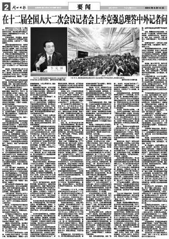在十二届全国人大二次会议记者会上李克强总理答中外记者问