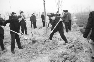 目前,沈丘县上下正抢抓大好时机掀起植树高潮。据了解,该县在植树时主要选择了适宜当地成活的槐树、梧桐树、杨树等,既绿化环境又不浪费,得到广大群众的好评。