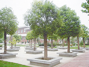 银杏,银杏科,又名白果树,落叶乔木, 雌雄异株。适应性强,抗烟尘、抗火灾、抗有毒气体,病虫害少,不污染环境。对土壤条件要求不严,树干光洁,是著名的无公害树种。银杏叶形古雅,给人以俊俏典雅之感。树体高大,树干通直,姿态优美,春夏翠绿,深秋金黄,是理想的园林绿化、行道树种。银杏早期生长慢。
