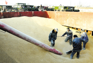 昨日上午,工人正在周口港忙碌卸货。横贯周口的沙颍河四季通航,是天然的“黄金水道”。我市的粮食、许昌的煤炭等均是通过周口港运往华东地区,下游的建材等物品则通过水路运抵周口。(记者 沈湛 摄)