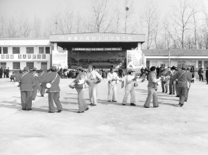 郸城县在发展农村经济的同时大力加强农村文化建设,建立文化大院,丰富农民文化生活。图为汲冢谢寨村农民腰鼓队在进行表演。