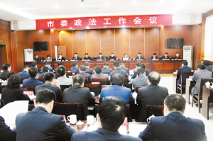 市委常委、政法委书记谢海洋作工作报告,对今年的政法工作进行全面部署。谢海洋强调,全市政法机关和全体政法干警要充分认识做好政法工作的使命感,为维护全市社会政治大局稳定,为人民群众安居乐业,为社会公平正义,为实现富民强市采取新举措,树立新形象,开创新局面。要正视问题,增强扭转工作被动局面的紧迫感;认清形势,明确政法工作的新要求;勇于拼搏,奋力开创政法工作新局面;固本强基,切实加强政法队伍建设。