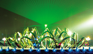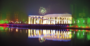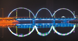 穿越项城新老城区的驸马沟,昔日污水横流,垃圾遍地,臭气熏天。项城市委、市政府倾听民意,实施驸马沟改造工程,投资2.5亿元,对长3.5公里驸马沟进行水系改造。如今,驸马沟生态公园绿树成荫、花艳草绿,已成为市民休闲、娱乐的好去处。图为驸马沟夜景。 杨光林 摄