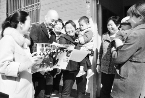 昨日上午,太康县城郊乡村民王育英一家高兴地收到了市摄影家协会送来的全家福照。“马年新春送温暖,全家福照到农家”是由周口晚报社、市摄影家协会联合举办的公益摄影活动,摄影活动结束后,主办方从广大摄友拍摄的农家全家福作品中征集100幅作品,制成相框后赠送受拍摄家庭。这些选出的作品将被结集成册,经过再包装后推向国家及国际摄影展览。(记者 王映 摄)