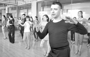 昨日,由市体育舞蹈协会主办、市阳光舞蹈学校承办的“周口市首届拉丁舞外教讲习班”在阳光舞蹈学校举办。讲习班邀请了国际著名国标舞专家、曾获得俄罗斯国标舞锦标赛十项全能冠军的谢尔盖先生进行授课,共有来自我市七县一市一区的30多名拉丁舞教师参加。 (记者 王映 摄)