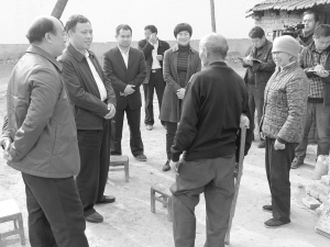 钱店镇杨寨行政村是刘广明教育实践活动联系点,在这里,他走访慰问了大周庄村困难群众周振南和周运南,详细了解困难群众的家庭情况,询问主要经济收入来源情况,生活上有什么困难。当得知每户困难群众都能享受到党的惠农政策时,刘广明十分欣慰,并叮嘱他们有什么困难及时向镇、村干部反映。