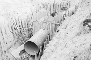 昨日,南水北调沙河北周口大道施工现场有条不紊。南水北调中线工程分配给周口市的水量每年是1.03亿立方米,中心城区规划为西区水厂和东区水厂。配套工程通水后,2015年按设计受水量的50%供水,以后逐年增加10%,2020年按设计受水量的100%供水,惠及千家万户。 (记者 沈湛 摄)