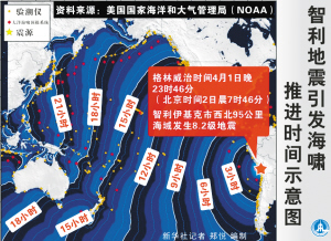 据新华社华盛顿4月2日电(记者 祁星 周而捷)位于美国夏威夷的太平洋海啸预警中心2日说,智利北部强震引发的海啸将影响夏威夷附近海域,但不会造成巨大破坏。