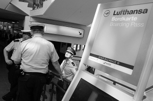 德国汉莎罢工致3800架次航班取消 4月2日,在德国柏林泰格尔机场,警察聚集在德国汉莎航空的自助设备旁。因劳资纠纷,汉莎航空飞行员工会于4月2日至4日举行罢工,取消共约3800架次航班,受影响旅客将达到42.5万人次。新华社发