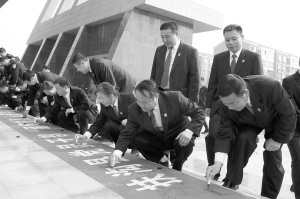 近日,为深入开展党的群众路线教育实践活动,扶沟县法院组织法官到吉鸿昌将军纪念馆开展“缅怀先烈、心系群众、争做为民务实清廉的优秀法官”活动,以吉鸿昌将军“做官即不许发财”的信条激励法官公正司法、一心为民。图为签名活动。(邹鹏举 李春相 摄)