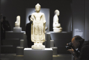 东南亚佛教文物雕塑在纽约展出 4月7日,一名摄影师在纽约大都会艺术博物馆拍摄展出的东南亚印度佛教文物雕塑。当天,“消失的王国”东南亚印度佛教文物雕塑展在纽约举行媒体预展,并将于4月14日向公众开放。这次展览展示了160余件来自柬埔寨、越南、泰国、马来西亚和缅甸等东南亚国家的国宝级青铜、石雕和陶制佛教文物雕塑,再现了公元5至8世纪东南亚地区悠久灿烂的宗教文化。 新华社记者 王雷 摄