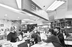 4月9日凌晨,读者在三联韬奋书店付款购书。