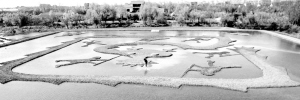 4月15日,金山农民画家陆永忠在长宽70米的大地“画框”内“作画”。大型水彩稻农民画《舞起“我的中国梦”——巨龙舞梦》将于今年“五一”正式亮相上海金山农民画“蚯蚓陆”乡村艺术庄园。《巨龙舞梦》由上海非物质文化遗产金山农民画传承人陆永忠创意,大地“画框”长宽70米,总面积约5000平方米。据陆永忠介绍,金山农民画在大地作画是首创,用大地做画布,用彩色水稻当“颜料”,通过泥雕、彩色水稻生长“种”出一幅壮观的金山农民画。
