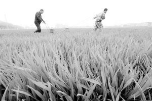 近日,周口市农科院的农技人员在给小麦施肥。眼下正值小麦田间管理关键时期,我市农民朋友不误农时,及时为小麦打药、除草、浇水、施肥,为夏粮丰收打基础。(记者 金月全 摄)