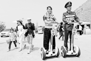 福建惠安:警民共建平安景区 4月16日,惠安县祟武边防派出所民警和女民兵组成的治安联防队使用新型手扶平衡车在祟武景区巡逻。近年来,崇武古城游客不断攀升,驻守在崇武半岛的边防官兵与当地群众在全国率先建立联防联控“旅游警务”模式,24小时处置各种突发事件和治安案件,创建平安旅游环境,确保旅客生命财产安全。 新华社记者 张国俊 摄