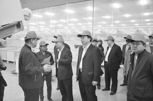 4月18日,濮阳县党政考察团一行在太康县产业集聚区参观考察。之前,省政府通报表彰2013年度全省产业集聚区发展先进单位,太康县被授予“十快”产业集聚区。(记者 刘俊涛 摄)