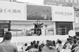 4月20日,一辆款式新颖的流动演出车在我市科技市场献演,街舞、川剧变脸等节目轮番上演,吸引了众多市民驻足观看。(记者 王亚辉 摄)