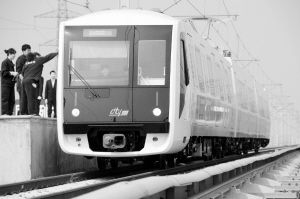 中国首列市域快轨车辆在长春下线试乘 4月24日,中国首列市域快轨车辆在长春客车股份有限公司厂区内试运行。当日,中国首列市域快轨车辆在中国北车长客股份公司的试乘线路上运行,该款列车采用双供电制式的受电弓,并可自动切换。新华社记者 林宏 摄