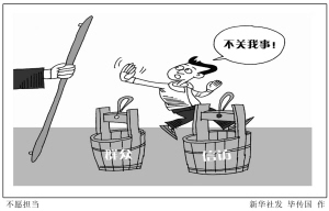 不愿担当 “八项规定”实施以来,党风政风出现了可喜变化,但一个值得注意的情况是,一些地方一些干部不违规、不吃请、不收礼了,但也躲事绕行,不敢担当、不愿担当、不善担当问题逐渐冒头。以群众为师,为担当补课,勇于作为,在当下群众路线教育实践活动中显得尤为重要。 新华社发 毕传国 作