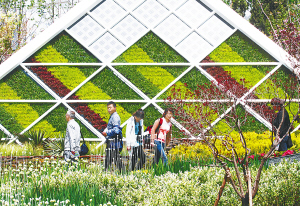 4月25日,几名游客在香港园外参观。当日,以“让生活走进自然”为主题的2014青岛世界园艺博览会正式开幕。青岛世园会园区占地总面积241公顷,基本空间结构为“两轴十二园”。其中,“两轴”为鲜花大道轴和林荫大道轴,“十二园”包括主题区的中华园、花艺园、草纲园、童梦园、科学园、绿业园和国际园以及体验区的农艺园、茶香园、花卉园、百花园和山地园。本届世园会将一直持续至10月25日,在6个月的会期内预计将迎接1200万人次前来参观。新华社发