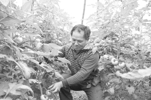 昨日,项城市贾岭镇无公害瓜果蔬菜种植基地里,菜农“钟点工”正在温棚里管理番茄。据了解,该镇依托龙头加工企业和镇村农业合作社,发展了温室辣椒、茄子、黄瓜、西瓜等蔬菜种植,安置了大量的富余劳动力就近就业,每人每天收入在60元以上,促进了农民增收。 (张永久 摄)