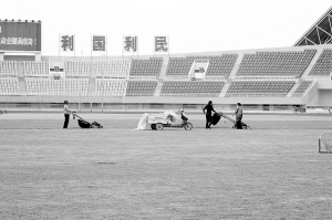 市体育中心组织人员对体育场内草坪适时进行修整,保证了体育场整洁有序,给市民提供一个良好的休闲娱乐环境。