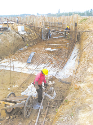 左图 5月4日,在投资上亿元的淮阳县东方神话游乐园项目建设工地,工人正忙碌工作。去年以来,淮阳县依托人文厚重、生态秀美的资源优势,大力发展文化旅游产业,努力打造“周口文化名片”。(记者 侯俊豫 摄)
