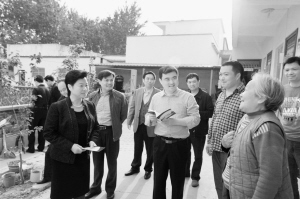 日前,省委督导组到商水县邓城镇实地调研党的群众路线教育实践活动开展情况。图为省委督导组成员和邓城镇敬老院里的老人交谈的情景。 记者 岳建辉 通讯员 刘飞 摄